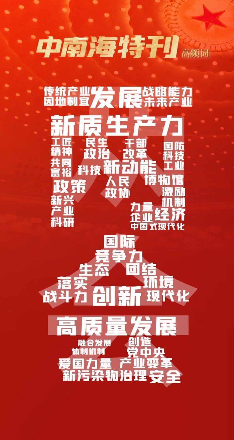 央視網(wǎng)I學(xué)習(xí)數(shù)據(jù)庫匯總分析總書記今年兩會期間重要講話顯示,“工匠精神”“新污染物治理”“博物館”等高頻詞持續(xù)升溫,引發(fā)熱議。這些解碼中國的高頻詞深刻印證了一種中國精神——歷史主動精神,彰顯了中國共產(chǎn)黨清醒的歷史自覺、堅定的歷史自信、強烈的責(zé)任擔(dān)當(dāng)。