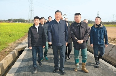 湖南是全國13個糧食主產(chǎn)省之一,水稻播種面積、總產(chǎn)量均居全國第一。當(dāng)天下午,習(xí)近平來到常德市鼎城區(qū)謝家鋪鎮(zhèn)港中坪村,走進(jìn)當(dāng)?shù)丶Z食生產(chǎn)萬畝綜合示范片區(qū),察看秧苗培育和春耕備耕進(jìn)展,聽取高質(zhì)量推進(jìn)農(nóng)業(yè)現(xiàn)代化情況介紹,并同種糧大戶、農(nóng)技人員、基層干部一筆一筆算投入產(chǎn)出賬。習(xí)近平強(qiáng)調(diào),我國有14億多人口,糧食安全必須靠我們自己保證,中國人的飯碗應(yīng)該主要裝中國糧。要建設(shè)好高標(biāo)準(zhǔn)農(nóng)田,推行適度規(guī)模經(jīng)營,加強(qiáng)政策支持和示范引領(lǐng),加大良種、良機(jī)、良法推廣力度,在精耕細(xì)作上下功夫,進(jìn)一步把糧食單產(chǎn)和品質(zhì)提上去,讓種糧也能夠致富,進(jìn)而吸引更多農(nóng)戶參與發(fā)展現(xiàn)代化大農(nóng)業(yè),真正把中國特色農(nóng)業(yè)現(xiàn)代化之路走穩(wěn)走扎實(shí)。