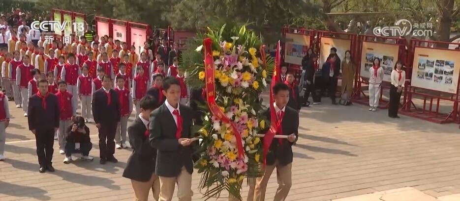 在湖南湘西州湘鄂川黔革命根據(jù)地舊址,退役軍人老兵宣講團(tuán)成員生動講述先烈們的英勇事跡,寄語廣大青少年樹立遠(yuǎn)大理想,勇?lián)鷷r代重任。在四川宜賓烈士紀(jì)念館,團(tuán)員、少先隊員們通過“云祭掃”方式,向英烈敬獻(xiàn)電子鮮花。在北京,200名少先隊員代表齊聚中國少年英雄紀(jì)念碑前,向少年英雄敬獻(xiàn)花籃。