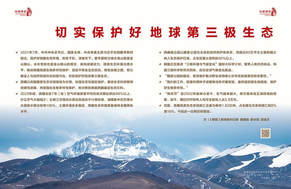 生態(tài)優(yōu)先,綠色發(fā)展。在“地球第三極”的山水間,各族干部群眾綿綿用力、久久為功,扎實推進生態(tài)文明建設(shè)。