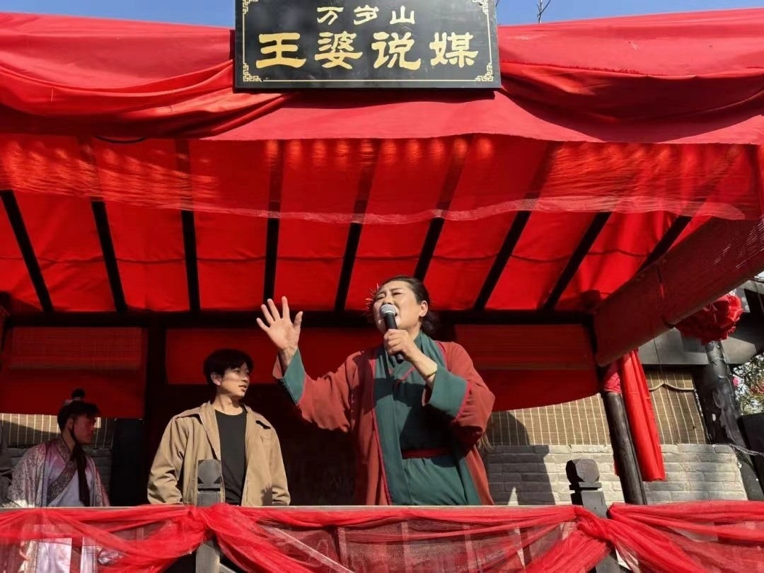 占地面積500余畝的萬(wàn)歲山武俠城景區(qū)每天有上百場(chǎng)節(jié)目上演,《王婆說(shuō)媒》原本是一場(chǎng)只有十分鐘的“下飯小菜”,趙梅憑脫口而出的金句和高超的互動(dòng)技巧讓節(jié)目時(shí)長(zhǎng)一延再延。當(dāng)反感被催婚的年輕人也開(kāi)始興致盎然地關(guān)注“王婆說(shuō)媒”時(shí),趙梅打趣說(shuō):“人人都說(shuō)單身好,人人都往開(kāi)封跑。”