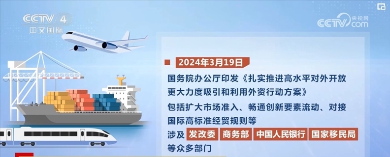 2024年3月19日,國務(wù)院辦公廳印發(fā)《扎實(shí)推進(jìn)高水平對(duì)外開放 更大力度吸引和利用外資行動(dòng)方案》,包括擴(kuò)大市場準(zhǔn)入、暢通創(chuàng)新要素流動(dòng)、對(duì)接國際高標(biāo)準(zhǔn)經(jīng)貿(mào)規(guī)則等,涉及國家發(fā)展改革委、商務(wù)部、中國人民銀行、國家移民局等眾多部門。