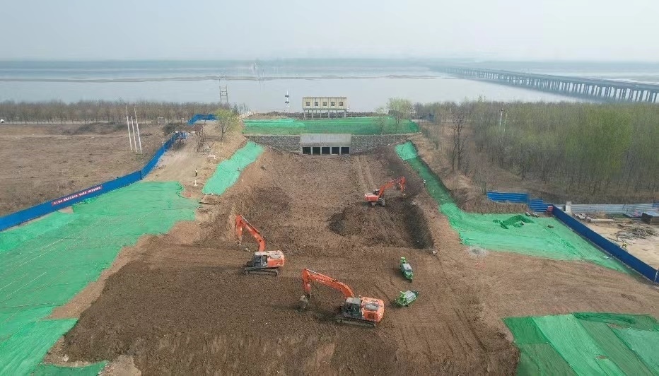 圖為天津靜海區(qū)良王莊泵站改擴建工程施工現(xiàn)場。新華社記者 劉詩平 攝