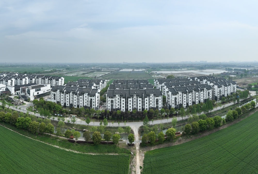這是位于浙江省湖州市安置上岸漁民的義皋新村(2024年4月11日攝,無人機照片)。