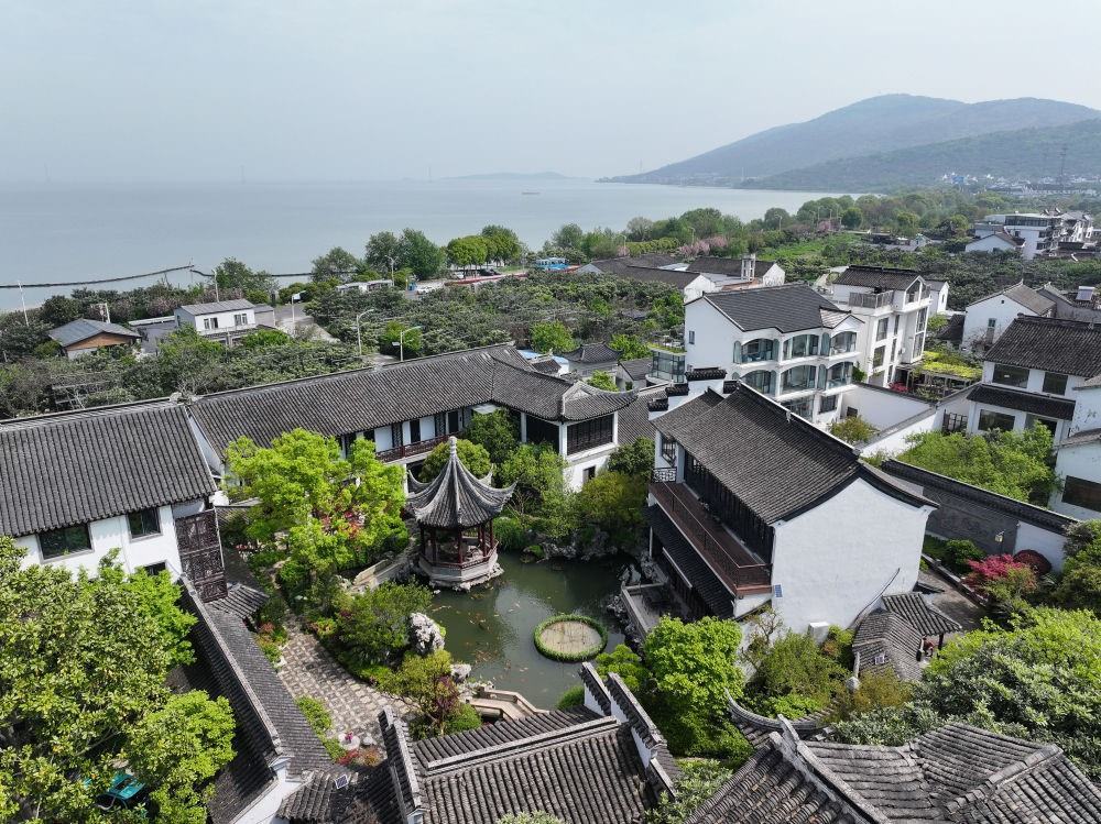 這是在江蘇省蘇州市吳中區(qū)東山鎮(zhèn)太湖畔拍攝的民宿(2024年4月11日攝,無人機照片)。