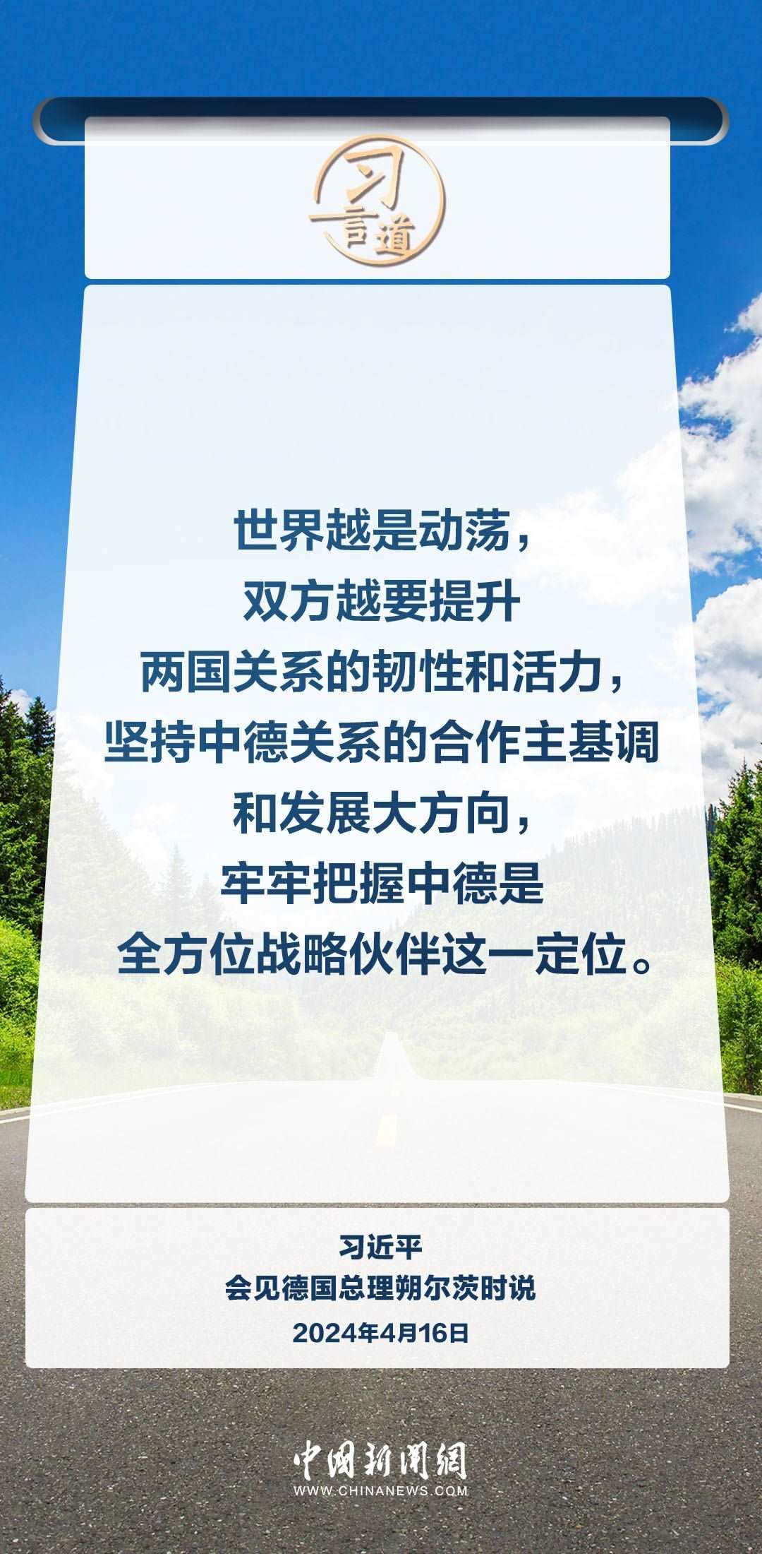 4月16日上午,國家主席習近平在北京釣魚臺國賓館會見德國總理朔爾茨。習近平指出——