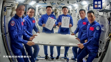 4月28日,神舟十七號、神舟十八號航天員乘組在軌舉行交接儀式,兩個乘組移交了中國空間站的鑰匙。神舟十七號航天員乘組將于4月30日返回地球。