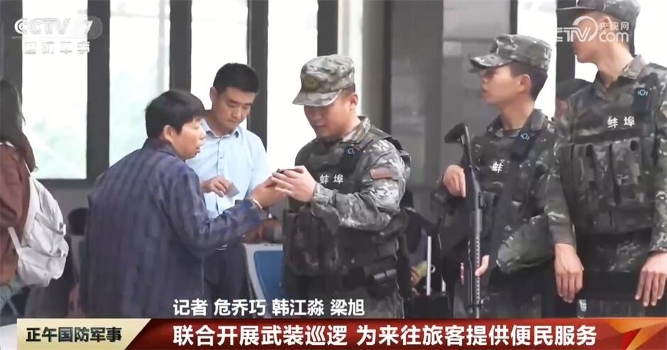 在安徽蚌埠火車站,武警官兵與公安特警聯(lián)合開(kāi)展武裝巡邏,主動(dòng)加大對(duì)重點(diǎn)區(qū)域的實(shí)時(shí)監(jiān)控和巡邏力度,在維護(hù)秩序的同時(shí),官兵還耐心為廣大旅客答疑解惑,提供便民服務(wù)。