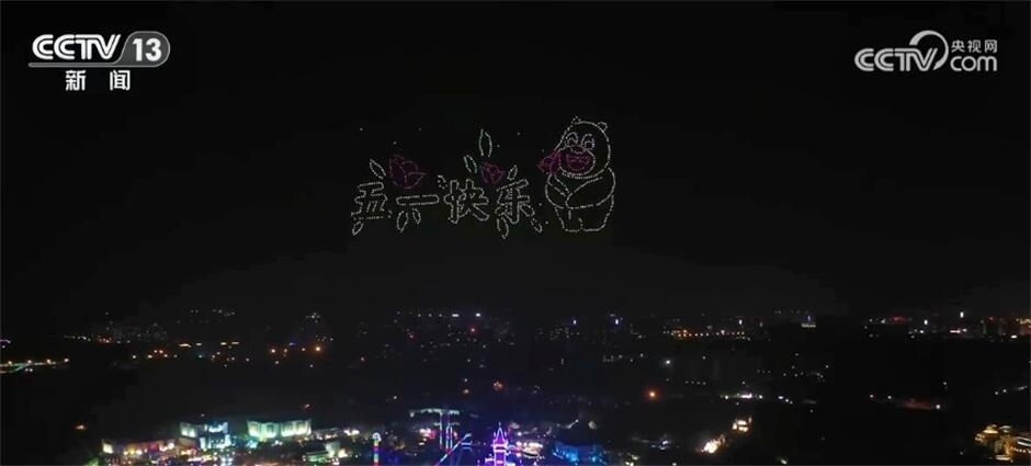 在鄭州的一家大型游樂園,千架無人機組成巨幅“五一快樂”的祝福語,還有夢幻星河大巡游、篝火狂歡派對等夜游項目吸引了大批游客。在這個海洋公園里,游客可以近距離觀賞5萬多只極地海洋動物,海洋大戲、國潮快閃、機甲巡游等節(jié)目輪番上演。