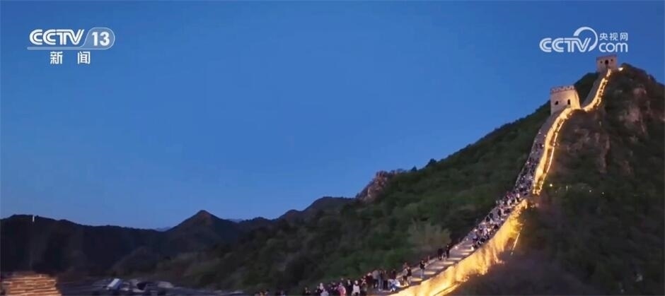 在密云,司馬臺長城也在夜間被“點亮”,如火龍般在山間蜿蜒。游客可以提燈夜游,感受古長城的磅礴氣勢,也能泛舟河面,遠望山巒朦朧,近觀燈火輝煌。景區(qū)還推出音樂、舞蹈、詩歌和繪畫相結(jié)合的演出活動,無人機在夜空中的飛行表演也給市民游客帶來了震撼的視聽享受。