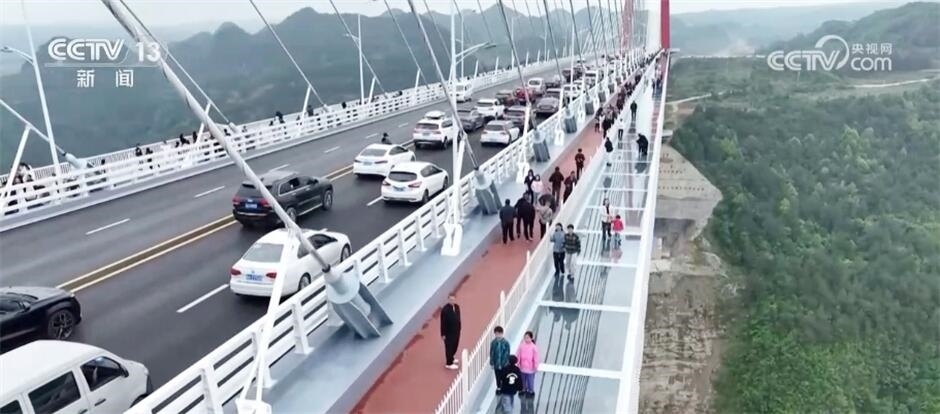 除了一些名勝古跡,這個假期,許多地方的新景觀也成為人們打卡的熱門地。在貴州,剛剛通車不久的龍里河大橋吸引了不少游客。人們登上大橋,沿著玻璃步道,體驗在云端漫步,領略山地峽谷的自然風光,游客們紛紛拍照打卡。