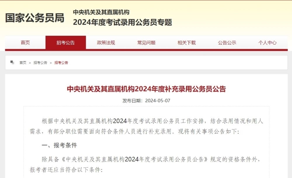 中央機(jī)關(guān)及其直屬機(jī)構(gòu)2024年度補(bǔ)充錄用公務(wù)員報(bào)名即將開(kāi)始