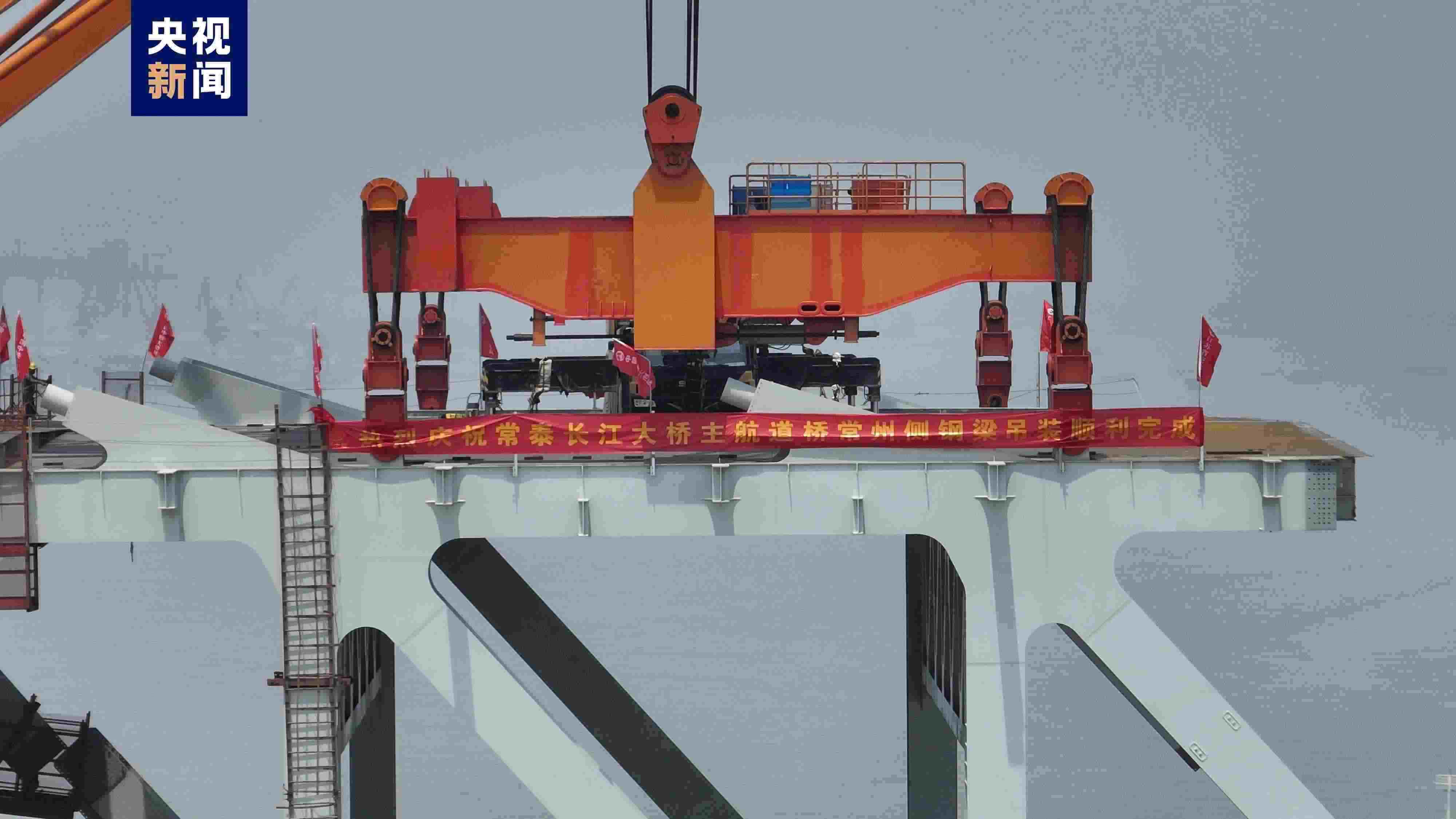 5月7日上午,常泰長江大橋主航道橋常州側(cè),最后一個大節(jié)段鋼梁平穩(wěn)吊裝完成,標志著常泰長江大橋常州側(cè)主體工程全部完成,全橋預計6月合龍。