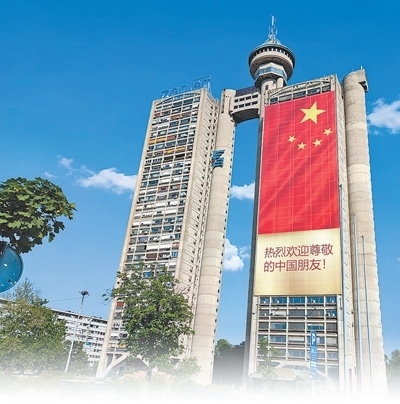 塞爾維亞首都貝爾格萊德市內(nèi)的建筑上懸掛起巨幅五星紅旗和中文標(biāo)語,歡迎習(xí)近平主席到訪。本報記者 謝亞宏攝