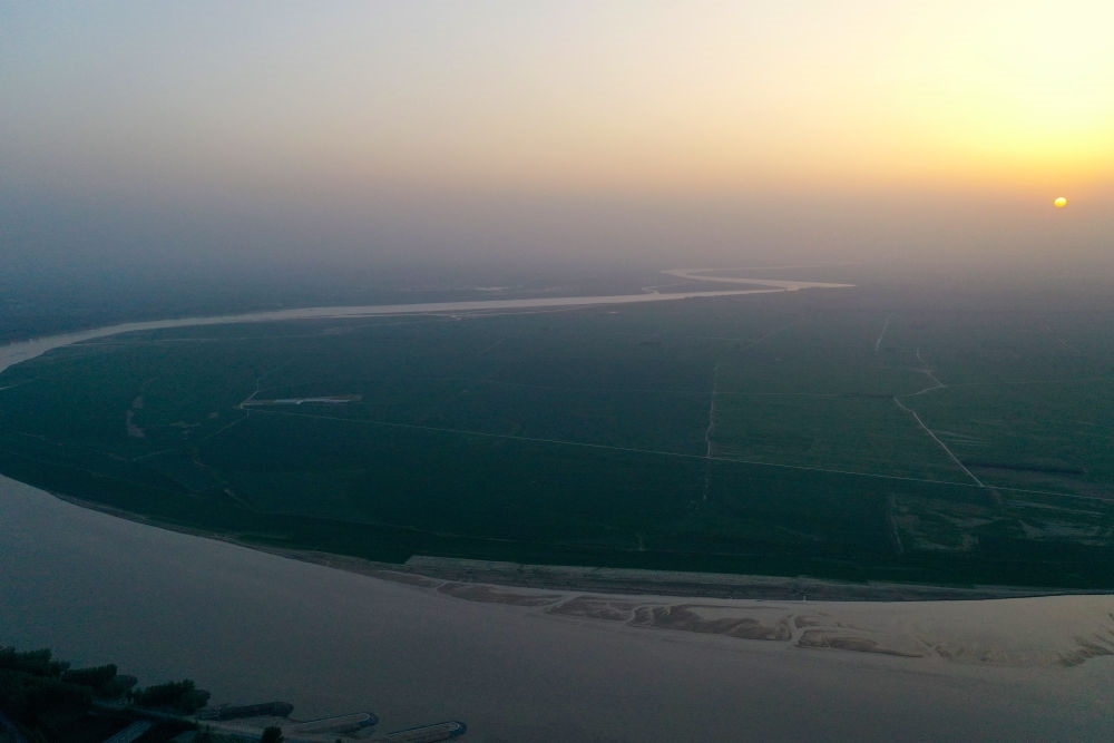 這是2024年4月17日在河南省蘭考縣黃河灣風(fēng)景區(qū)拍攝的黃河(無人機(jī)照片)。新華社記者 郝源 攝