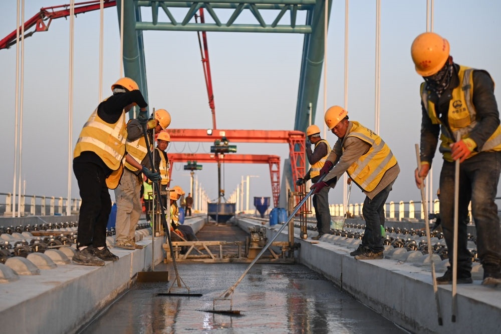 2024年3月20日,中鐵三局建設者在滬蘇湖鐵路東苕溪特大橋上施工。滬蘇湖鐵路起自上海虹橋站,途經(jīng)江蘇省蘇州市,終至浙江省湖州市湖州站。項目建成運營后,將進一步完善區(qū)域路網(wǎng)布局,促進沿線經(jīng)濟社會發(fā)展和長三角一體化高質(zhì)量發(fā)展。新華社記者 黃宗治 攝