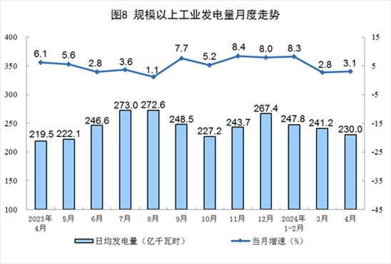 國家統(tǒng)計局:4月份規(guī)上工業(yè)發(fā)電量6901億千瓦時 同比增長3.1%