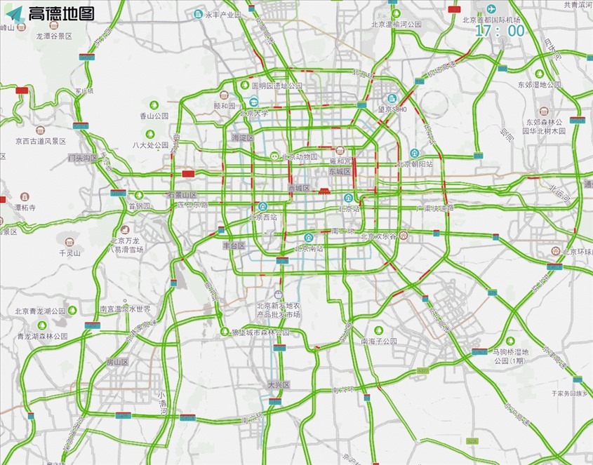 晚高峰期間,城區(qū)環(huán)路部分路段,萬泉河路至圓明園西路、通惠河北路、蓮石東路等城區(qū)道路出城方向車流集中,京藏高速、京承高速、京通快速、京港澳高速、機場高速等高速公路出京方向?qū)⒊霈F(xiàn)潮汐車流,高峰時段為17:00—20:00,限行尾號4和9的周五晚高峰交通壓力將尤為突出。
