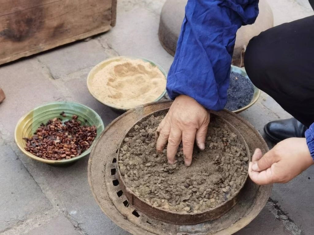 沖好針孔,便在磨石上反復(fù)銼尖。隨后倒入熱鍋里翻炒,再舀入一瓢水,針的剛性和硬度由此增加。接下來便輪到三大碗“大陽秘方”登場:白崖土粉末、松木炭和發(fā)酵后的豆豉,用于蒸針。“松木炭可以增加鋼針的含碳量,提升硬度;豆豉增加亮度;白崖土粉末作為分散劑讓針受熱均勻。這樣處理后可以保證針質(zhì)更堅(jiān)硬又有光澤?!?/p>