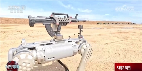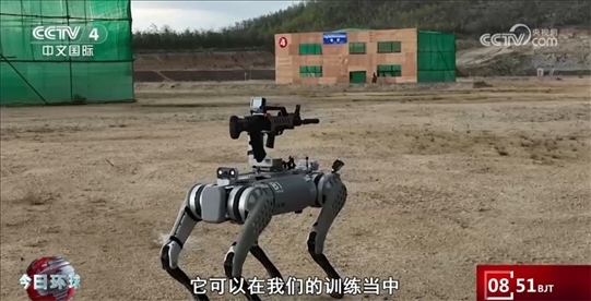 中方參演隊(duì)員陳威介紹:“我現(xiàn)在操作的是B1四足機(jī)器狗,它可以在我們的訓(xùn)練當(dāng)中代替我們的隊(duì)員先行進(jìn)行偵察和發(fā)現(xiàn)敵人后火力打擊,是我們城市攻防作戰(zhàn)中的新成員?!?/p>