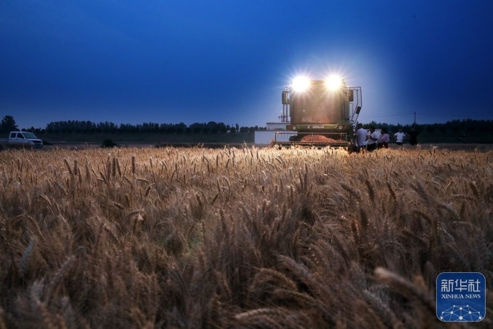 5月26日,河南省鄧州市文渠鎮(zhèn)肖店村村民在收獲小麥。新華社記者 李嘉南 攝