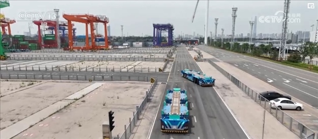 在堆場和貨輪之間有92個(gè)承擔(dān)運(yùn)輸任務(wù)的智能機(jī)器人,它們通過激光雷達(dá)、5G技術(shù),轉(zhuǎn)彎、減速、避讓,每跑一趟與周邊設(shè)備會進(jìn)行上百次信息交互。