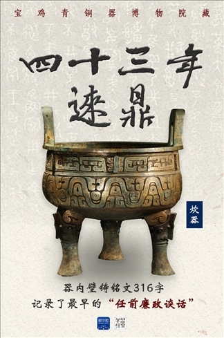 四十三年逨鼎共出土10件,大小不一。這是體積最大的一件,器內(nèi)壁鑄有銘文316字,講述了周宣王43年,逨被提拔為官司歷人,相當于現(xiàn)在的監(jiān)察官。周天子告誡逨要施政謹慎、依法處罰、明辨是非、廉潔從政。這與《周禮》中的“六廉”——廉善、廉能、廉敬、廉法、廉正、廉辨相互呼應(yīng)。