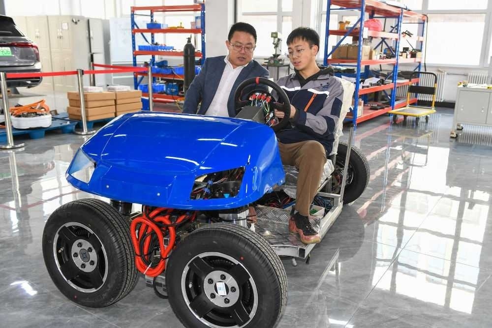 2024年3月13日,在吉林長春一家汽車科技企業(yè),吉林大學(xué)汽車工程學(xué)院教授靳立強(左)試乘智能底盤樣車。2023年,長春市科技局和吉林大學(xué)共建吉林大學(xué)概念驗證中心,一手對接高校,一手對接企業(yè),確??蒲谐晒诩夹g(shù)路線和商業(yè)模式上的可行性,實現(xiàn)“從0到1”的轉(zhuǎn)化。