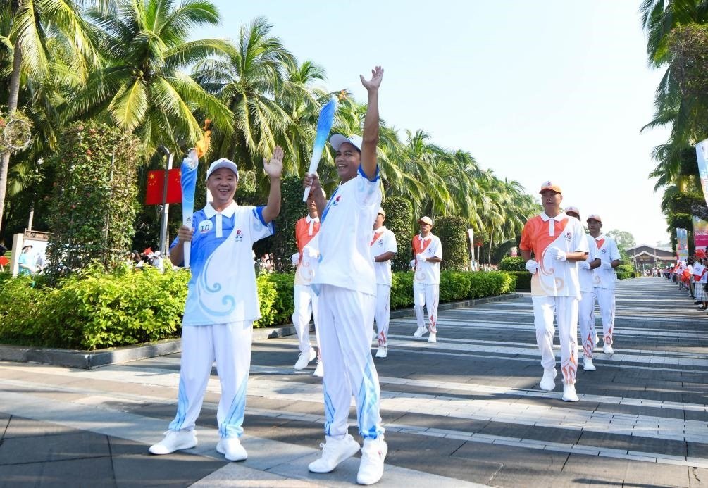 10月9日,中華人民共和國(guó)第十二屆少數(shù)民族傳統(tǒng)體育運(yùn)動(dòng)會(huì)火炬點(diǎn)燃暨火炬?zhèn)鬟f啟動(dòng)儀式在三亞市天涯海角舉行。新華社記者 楊冠宇 攝