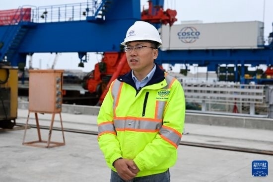 6月21日,在秘魯錢凱港,中遠(yuǎn)海運港口秘魯錢凱公司常務(wù)副總經(jīng)理何波接受新華社記者采訪。 新華社記者 李木子 攝