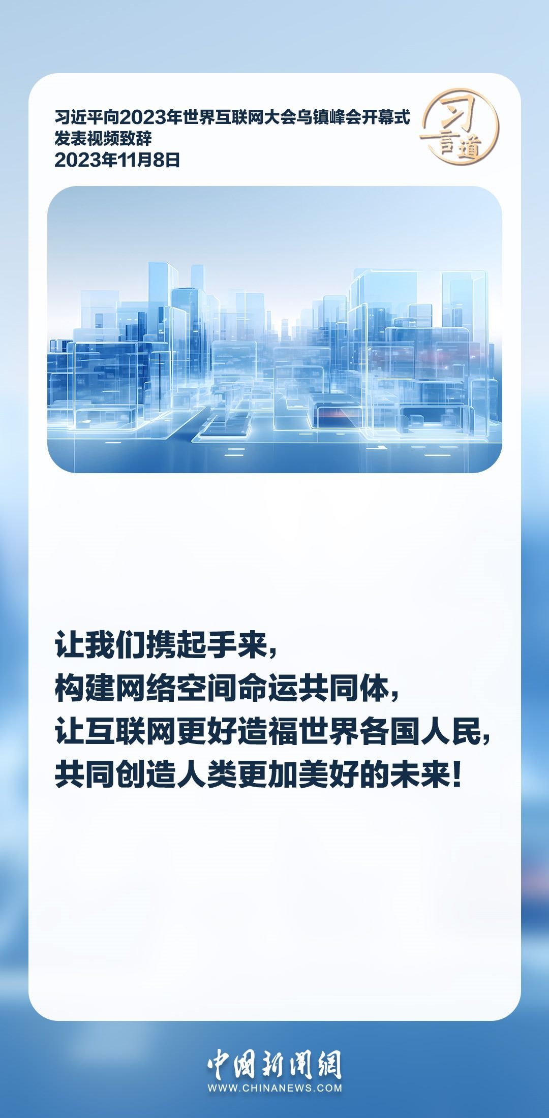 信息革命時代潮流浩蕩前行,網(wǎng)絡(luò)空間承載著人類對美好未來的無限憧憬。習近平主席多次強調(diào)各國應該共同構(gòu)建網(wǎng)絡(luò)空間命運共同體,推動網(wǎng)絡(luò)空間互聯(lián)互通、共享共治,為開創(chuàng)人類發(fā)展更加美好的未來助力。