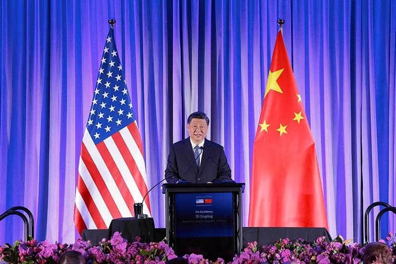 △當(dāng)?shù)貢r(shí)間2023年11月15日,習(xí)近平主席在美國(guó)舊金山出席美國(guó)友好團(tuán)體聯(lián)合舉行的歡迎宴會(huì)。