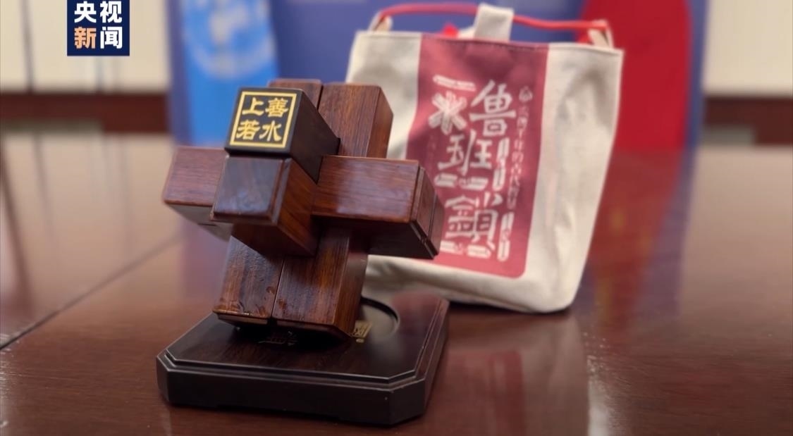 六根棕色木條相互巧妙鎖定,構(gòu)成一個(gè)穩(wěn)定的整體。這是中國(guó)擔(dān)任2023年11月聯(lián)合國(guó)安理會(huì)輪值主席首日向安理會(huì)成員贈(zèng)送的禮品——魯班鎖。