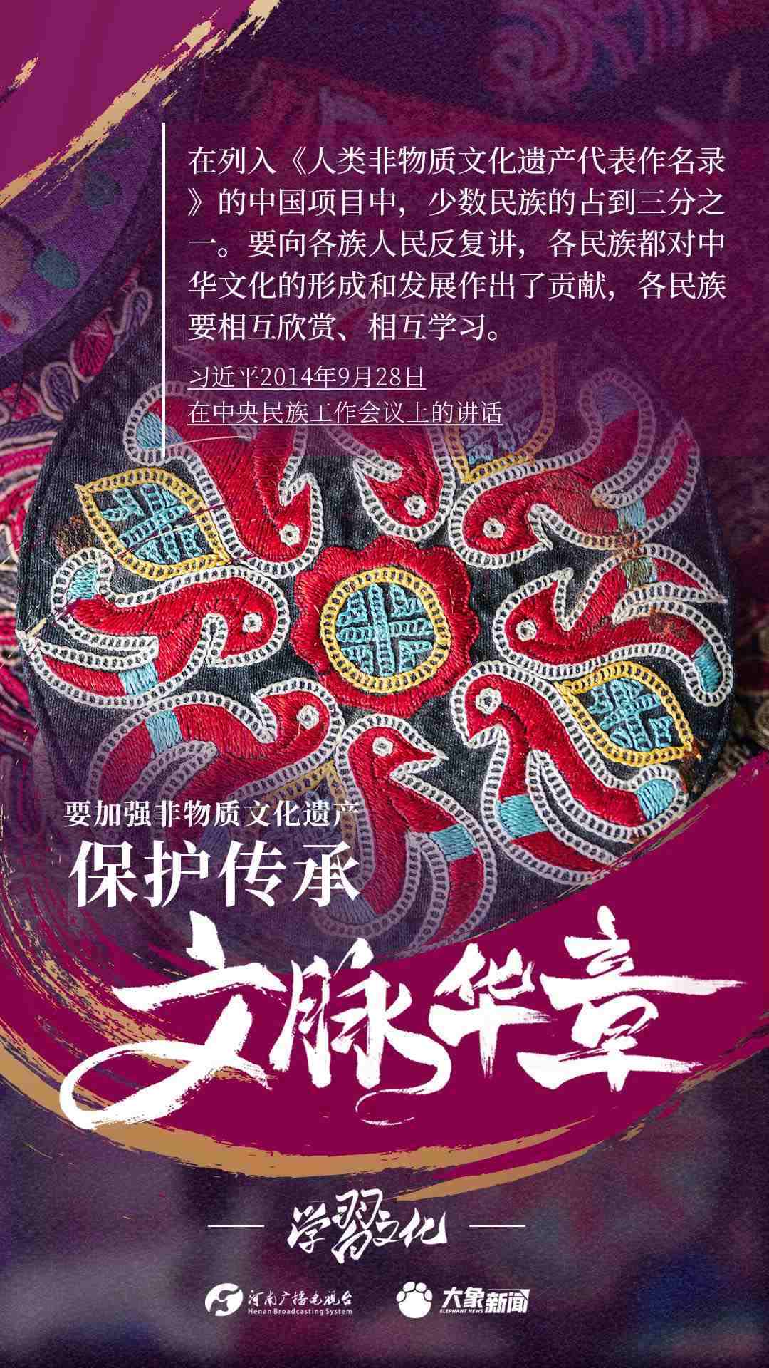 非物質(zhì)文化遺產(chǎn)是中華優(yōu)秀傳統(tǒng)文化的重要組成部分,是中華文明綿延傳承的生動(dòng)見證,是我國(guó)各族人民寶貴的精神財(cái)富。習(xí)近平總書記十分關(guān)心非物質(zhì)文化遺產(chǎn)的保護(hù)傳承,多次強(qiáng)調(diào)“要扎實(shí)做好非物質(zhì)文化遺產(chǎn)的系統(tǒng)性保護(hù)”“培養(yǎng)好傳承人”等。大象新聞為您梳理,邀您一起學(xué)習(xí)、領(lǐng)悟、踐行。