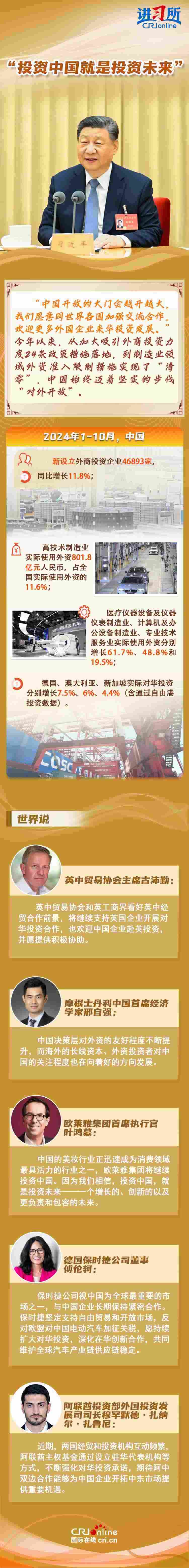 “中國是實(shí)干家、行動(dòng)派?!苯衲暌詠?,從習(xí)近平主席的歐洲之行到拉美之行,再到四天前在北京會(huì)見主要國際經(jīng)濟(jì)組織負(fù)責(zé)人,習(xí)近平一直強(qiáng)調(diào),中國的發(fā)展將給世界帶來巨大機(jī)遇。據(jù)聯(lián)合國貿(mào)易和發(fā)展會(huì)議不久前發(fā)布的《世界投資報(bào)告2024》中文版顯示,中國吸引外資的結(jié)構(gòu)不斷優(yōu)化、質(zhì)量不斷提高,多位政商界人士也認(rèn)為中國是一個(gè)非常有前景的市場(chǎng),投資中國就是投資未來。