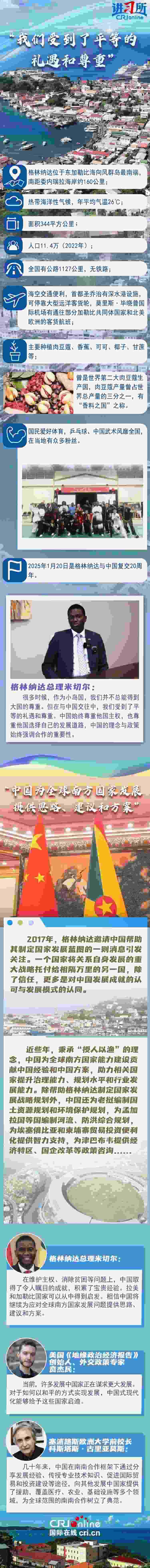 今年是格林納達(dá)與中國(guó)復(fù)交20周年。20年來,中格關(guān)系穩(wěn)定發(fā)展,雙方相互尊重、平等相待,政治互信不斷鞏固,各領(lǐng)域務(wù)實(shí)合作成果豐碩……樹立了大小國(guó)家平等相待、守望相助、互利共贏的典范。