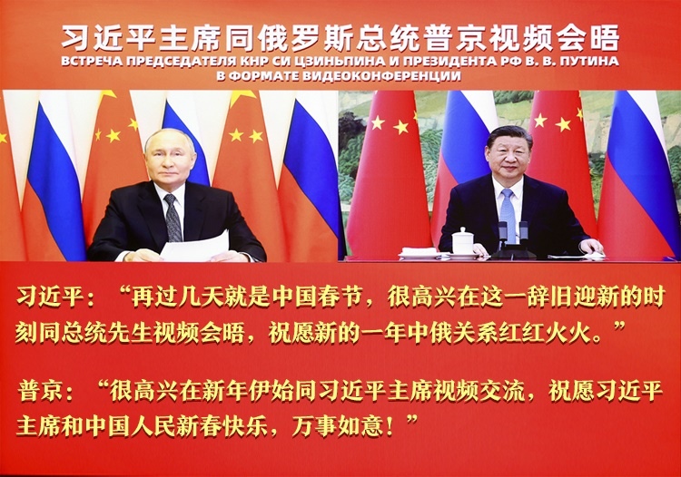 1月21日,中國國家主席習(xí)近平在北京同俄羅斯總統(tǒng)普京舉行視頻會晤,兩國元首互致新年祝福。習(xí)近平強調(diào),新的一年,我愿同總統(tǒng)先生一道,繼續(xù)引領(lǐng)中俄關(guān)系登高望遠,以中俄關(guān)系的穩(wěn)定性和堅韌性應(yīng)對外部環(huán)境的不確定性,共同促進兩國發(fā)展振興,維護國際公平正義。
