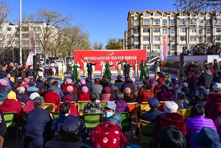 2024年11月21日,在內蒙古伊金霍洛旗阿勒騰席熱鎮(zhèn),烏蘭牧騎隊員表演歌舞節(jié)目。新華社發(fā)(王正攝)