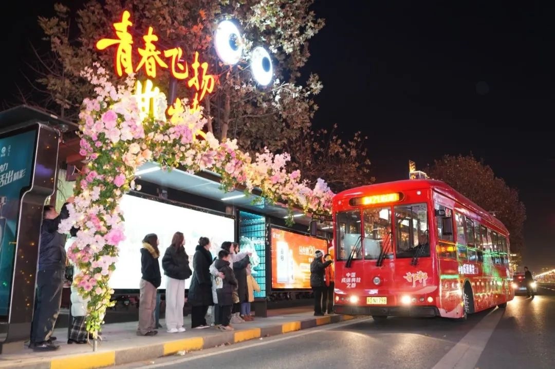 “公交車,既是城市流動的‘風景線’,也是‘文化線’?!焙惞患瘓F運營服務部部長李昀說,全市已推出26路、9路、33路等多條成語文化線路。此外,在53條線路995輛車輛外觀布置成語視覺圖像,在136部公交車內打造了“小型成語主題展館”,推出了兩輛夜間成語燈光巴士,建設了72個成語主題公交站亭。