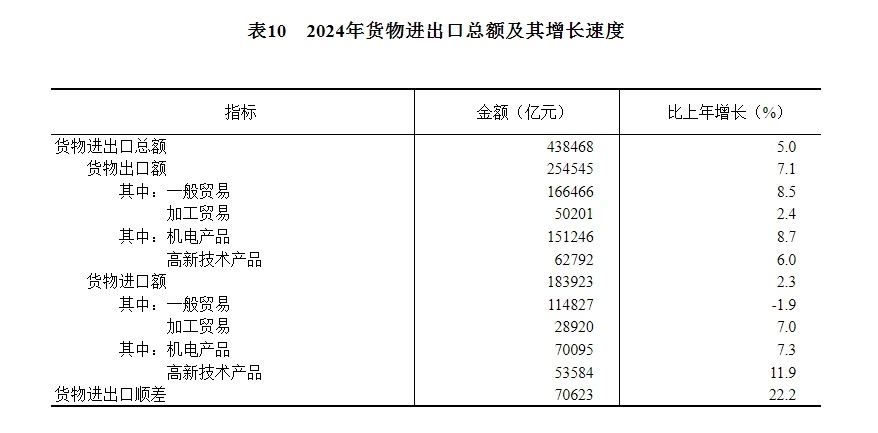 中華人民共和國2024年國民經(jīng)濟和社會發(fā)展統(tǒng)計公報