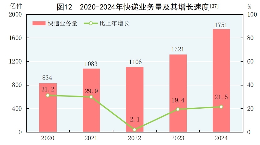 [37]2024年快遞業(yè)務(wù)量統(tǒng)計口徑調(diào)整,增速按可比口徑計算。