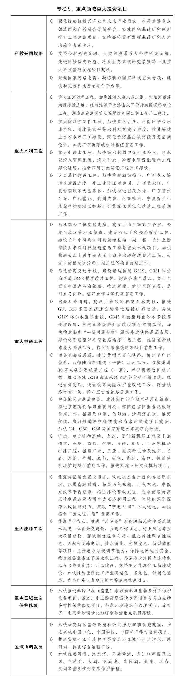 二是擴(kuò)大有效益的投資。統(tǒng)籌傳統(tǒng)和新型基礎(chǔ)設(shè)施建設(shè)、傳統(tǒng)和新興產(chǎn)業(yè)發(fā)展、“投資于物”和“投資于人”,著力提高投資的經(jīng)濟(jì)、社會(huì)、生態(tài)等綜合效益。2025年安排中央預(yù)算內(nèi)投資7350億元,比2024年多350億元。扎實(shí)推進(jìn)重大工程項(xiàng)目建設(shè),推動(dòng)“十四五”規(guī)劃102項(xiàng)重大工程圓滿收官,及早謀劃“十五五”重大項(xiàng)目。常態(tài)化做好項(xiàng)目謀劃儲(chǔ)備,加強(qiáng)用地、用海、用能、環(huán)評(píng)等要素和融資保障,高質(zhì)量推進(jìn)項(xiàng)目前期工作和建設(shè)實(shí)施,盡快形成實(shí)物工作量。加快地方政府專項(xiàng)債券發(fā)行使用,優(yōu)化完善專項(xiàng)債券管理機(jī)制,額度分配向項(xiàng)目準(zhǔn)備充分、投資效率較高、資金使用效益好的地區(qū)傾斜,擴(kuò)大用作項(xiàng)目資本金的領(lǐng)域、比例,實(shí)施好投向領(lǐng)域“負(fù)面清單”管理、下放項(xiàng)目審核權(quán)限等措施,在部分省市開(kāi)展“自審自發(fā)”試點(diǎn)。建立政府投資支持基礎(chǔ)性、公益性、長(zhǎng)遠(yuǎn)性重大項(xiàng)目建設(shè)長(zhǎng)效機(jī)制。深化投資審批制度改革,完善項(xiàng)目全周期監(jiān)督管理機(jī)制。更大力度促進(jìn)民間投資,從放寬準(zhǔn)入、權(quán)益保護(hù)、要素協(xié)同、融資支持等方面進(jìn)一步健全民營(yíng)企業(yè)參與國(guó)家重大項(xiàng)目建設(shè)的長(zhǎng)效機(jī)制,常態(tài)化向民間資本推介項(xiàng)目,在鐵路、核電、水利、生態(tài)環(huán)保、倉(cāng)儲(chǔ)物流、新型基礎(chǔ)設(shè)施、公共服務(wù)等領(lǐng)域推出一批吸引民間資本參與的重大項(xiàng)目,規(guī)范實(shí)施政府和社會(huì)資本合作(PPP)新機(jī)制,推動(dòng)基礎(chǔ)設(shè)施領(lǐng)域不動(dòng)產(chǎn)投資信托基金(REITs)擴(kuò)圍擴(kuò)容。