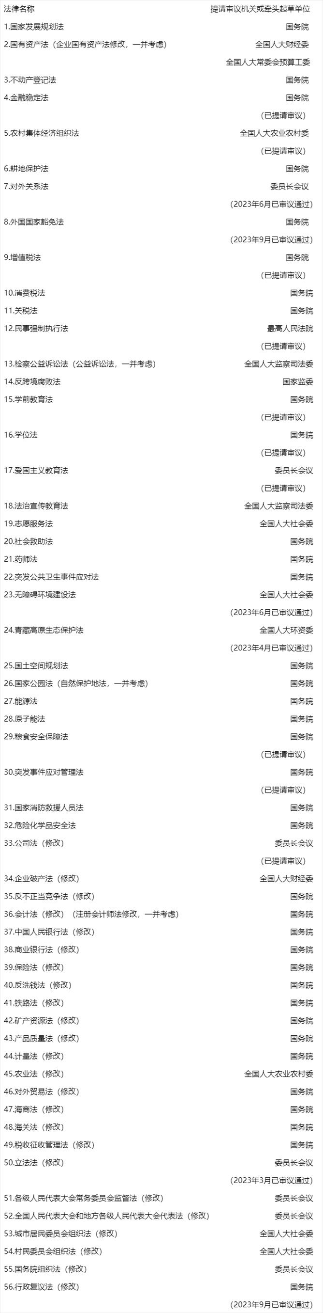 十四屆全國(guó)人大常委會(huì)立法規(guī)劃 新華社北京9月7日電十四屆全國(guó)人大常委會(huì)立法規(guī)劃(共......