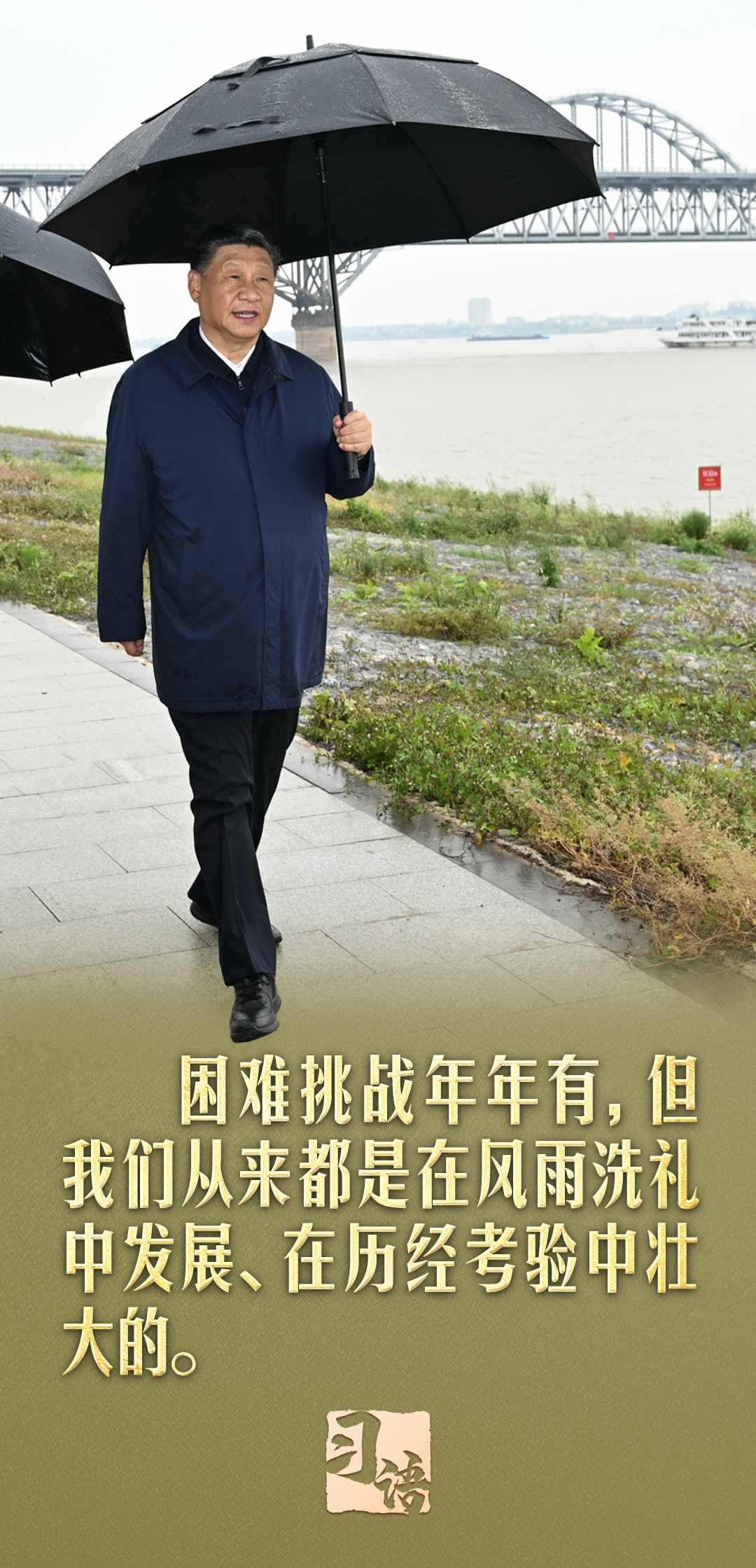 “遵道而行,但到半途須努力;會(huì)心不遠(yuǎn),要登絕頂莫辭勞”。在慶祝中華人民共和國成立75周年招待會(huì)上,習(xí)近平總書記引用南岳衡山這副對聯(lián)說道:“我們要居安思危、未雨綢繆,緊緊依靠全黨全軍全國各族人民,堅(jiān)決戰(zhàn)勝一切不確定難預(yù)料的風(fēng)險(xiǎn)挑戰(zhàn)。任何困難都無法阻擋中國人民前進(jìn)的步伐!”