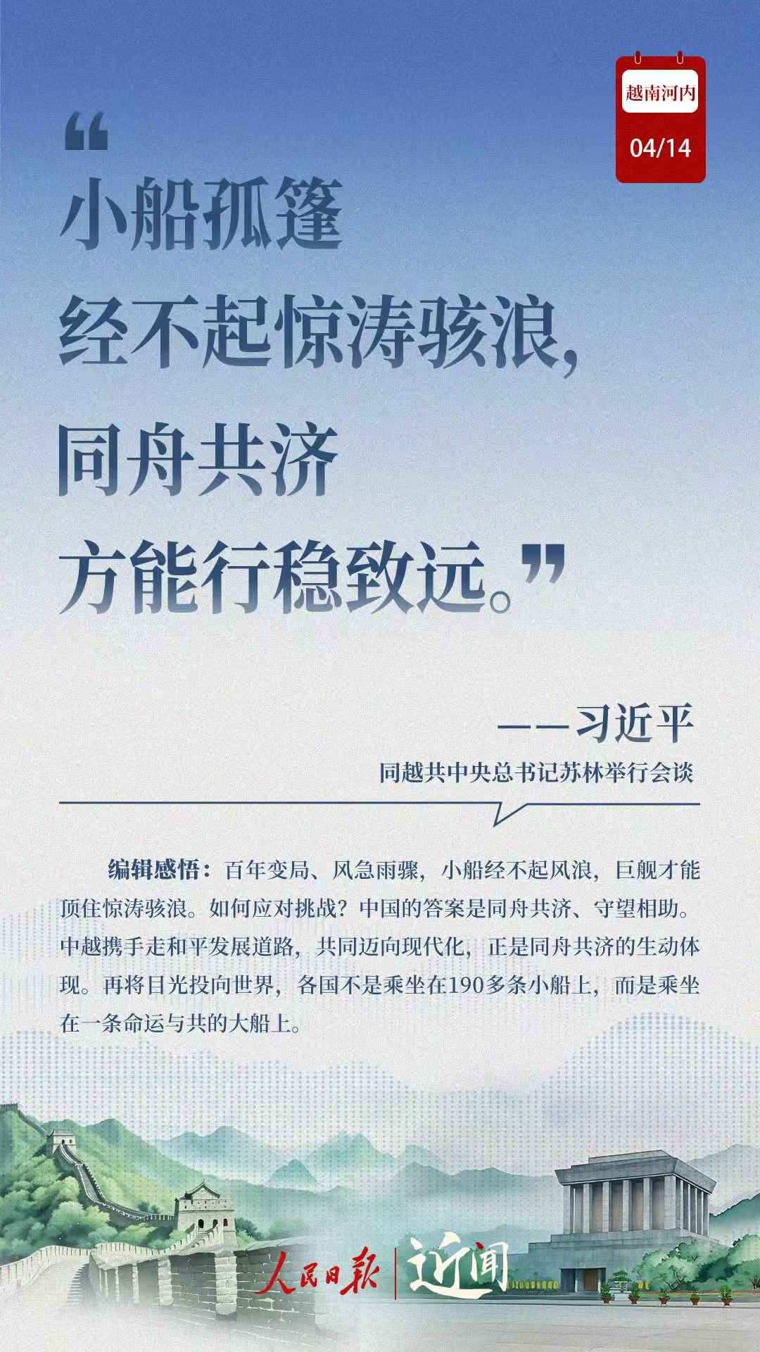 “小船孤篷經(jīng)不起驚濤駭浪,同舟共濟(jì)方能行穩(wěn)致遠(yuǎn)”“中越關(guān)系根基在人民、血脈在人民、力量在人民”……透過這些話,一覽此次越南之行。