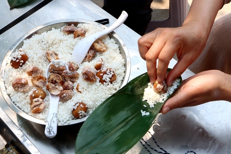 5月29日,在江蘇省興化市新時(shí)代文明實(shí)踐中心,居民參加包粽子比賽(無人機(jī)照片)。
