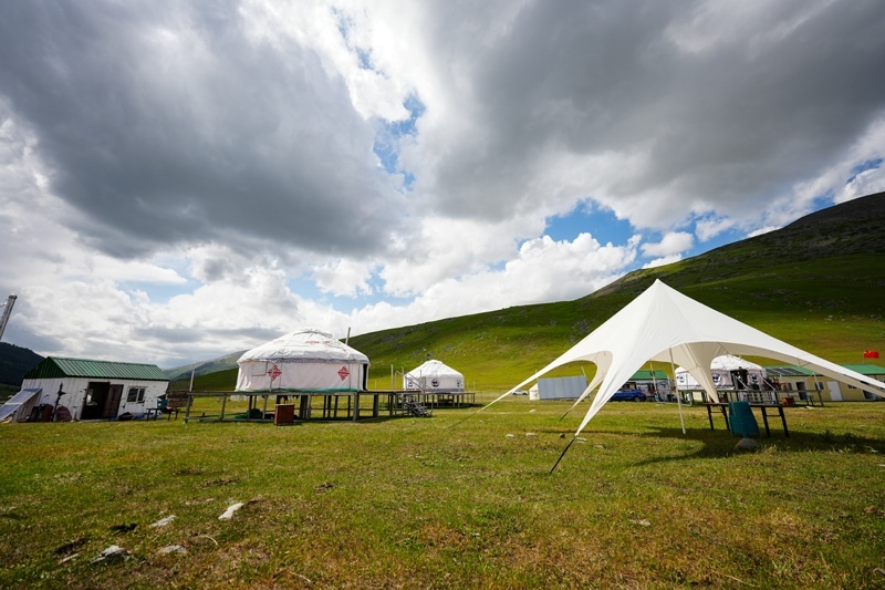 這是6月30日在阿禾公路旁拍攝的由當(dāng)?shù)卮迕窠?jīng)營的餐飲氈房。
