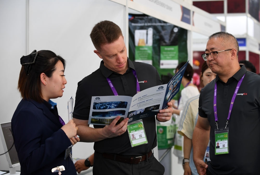 9月17日,在廣西南寧國際會(huì)展中心,人們?cè)谡褂[現(xiàn)場(chǎng)交流。新華社記者 陸波岸 攝