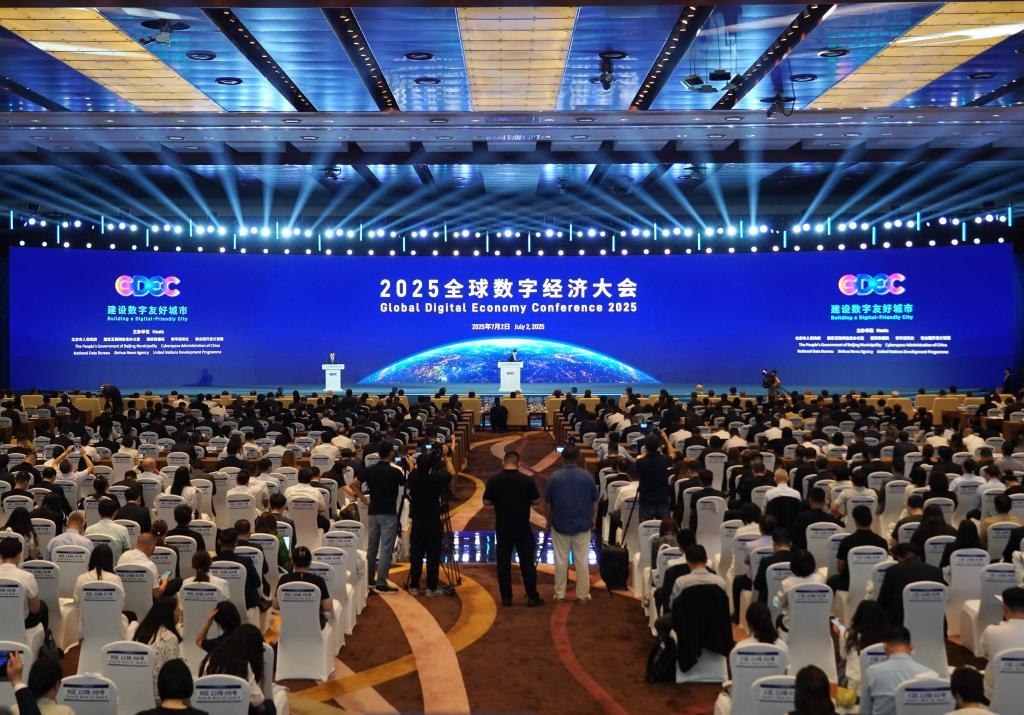 7月2日,2025全球數(shù)字經(jīng)濟大會在北京國家會議中心開幕。本屆大會以“建設(shè)數(shù)字友好城市”為主題,呈現(xiàn)開放共享、聚焦前沿、產(chǎn)業(yè)融合、增強體驗四大亮點。 新華社記者 張晨霖 攝