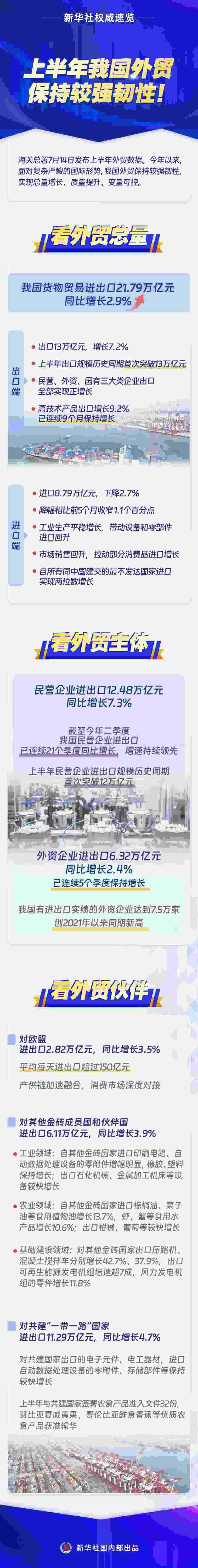 新華社權(quán)威速覽丨上半年我國(guó)外貿(mào)保持較強(qiáng)韌性!